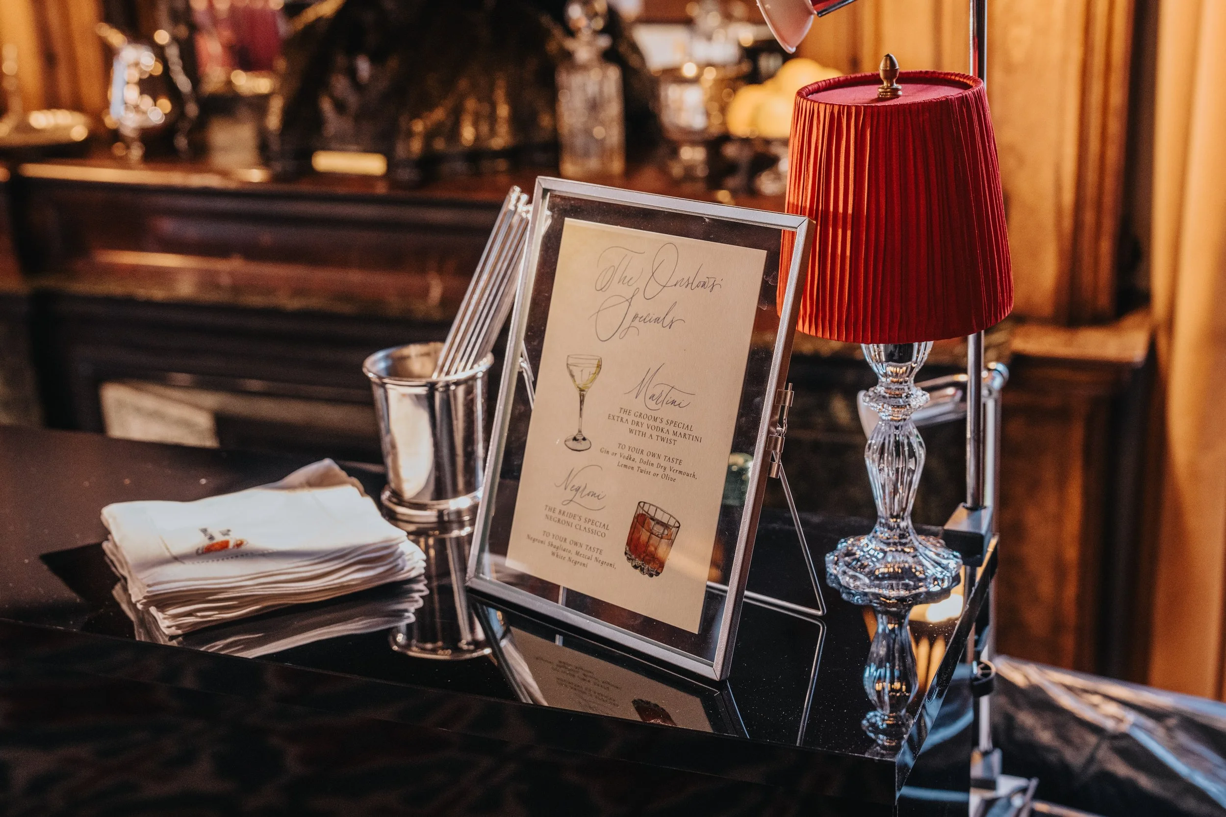 We partnered with Moriarty Events to deliver three bespoke bars for Emma & Tom’s London wedding, set within the iconic surroundings of the Reform Club on Pall Mall.